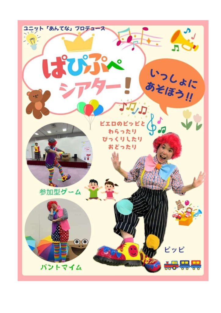 2026年2月7日 / 最終更新日時 : 2026年2月7日 管理者 お知らせ 「ぱぴぷぺシアター」開催のお知らせ 来たる3月2日(月)にクリエイティブセンター門川 体育館にて子育て応援企画「ぱぴぷぺシアター」を開催します。入場は無料です。1年前に「♪クリスマスミュージカル♪」でご出演いただいたユニットあんてなのみなさんが またまた楽しいシアターをお届けにやって来ますよ。今回も楽しみですね~ たくさんのみなさまのお越しをお待ちしています。詳しくはフライヤーをご確認ください。 ぱぴぷぺシアターダウンロード